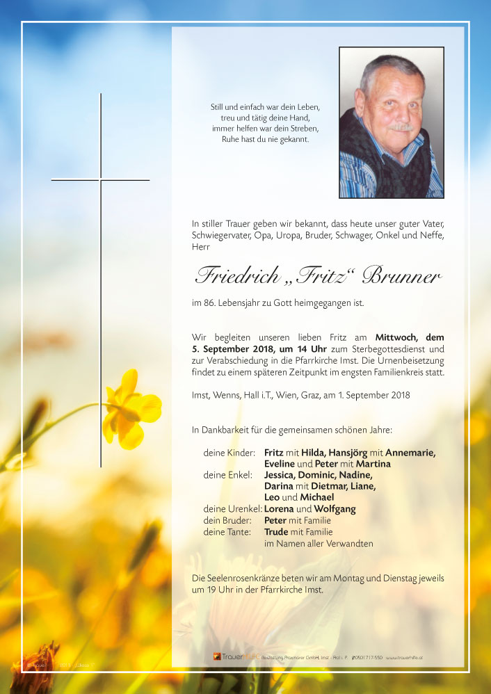 Ich wünsche Euch allen Kraft und Trost in dankbaren Erinnerungen an euren Papa zu finden. Mit Fritz am Gartenzaun über Blumen und Gemüse zu ratschen war für mich immer lehrreich und unterhaltsam . Auch seine freundliche Art schätzte ich an ihm.