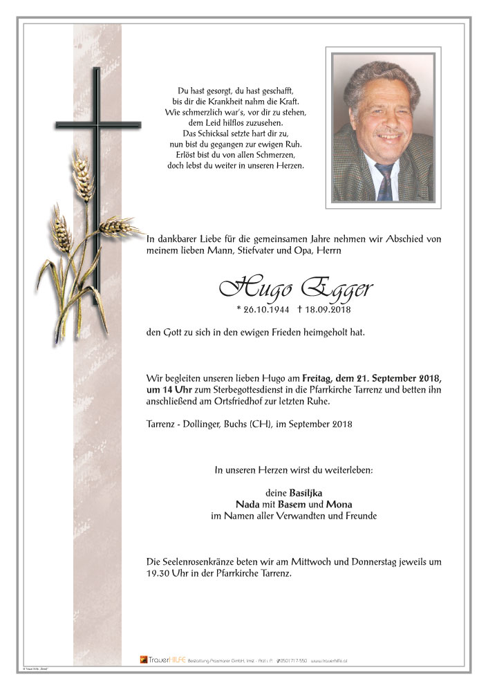 Friedhof Tarrenz, † 18.09.2018 (73 Jahre)