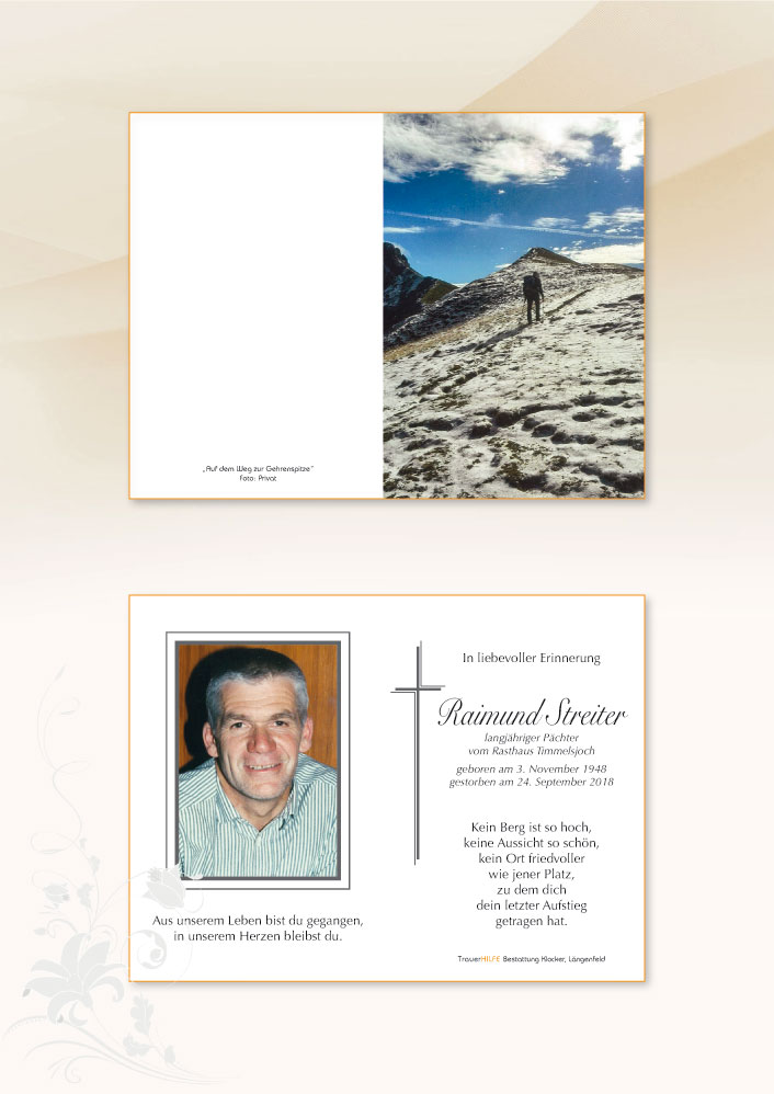 Liebe Trauerfamilie. Der Kegelclub Ötztal hat einen besonderen Kameraden verloren. Seine fröhliche Art, sein Kameradschaftliches Wesen, ja einfach, unser Raimund wird uns ewig in Erinnerung bleiben. Ruhe in Frieden.