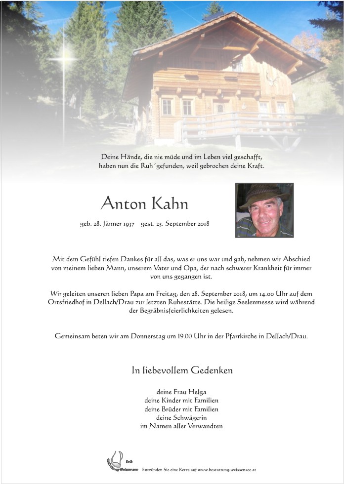 Friedhof Dellach Drau, † 25.09.2018 (81 Jahre)