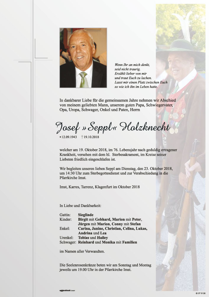 Ich möchte euch meine aufrichtige Anteilnahme entbieten. Josef’s ‘frecher’ Lacher wird mir in Erinnerung bleiben sowie die Zeit, die ich mit ihm zusammengearbeitet habe!
