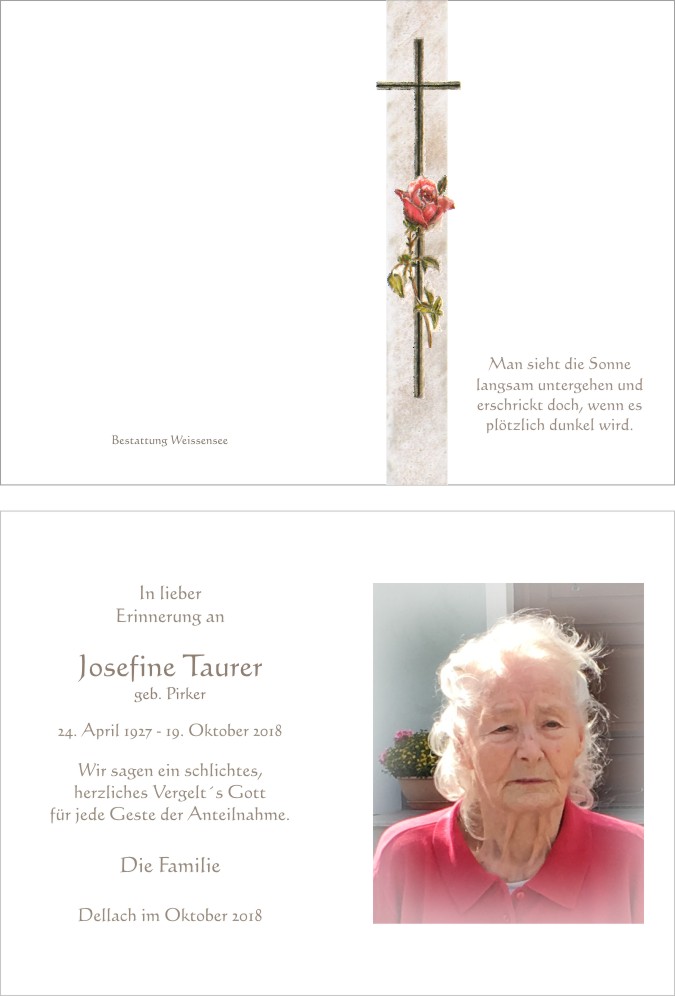 Bestattung wurde durchgeführt von: Markus Ertl Bestattung Weissensee Neusach 26 9762 - Weißensee Tel.: 04713 22 29 zum Bestatter