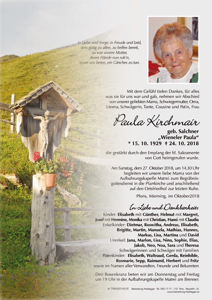 Friedhof Matrei am Brenner, † 24.10.2018 (89 Jahre)