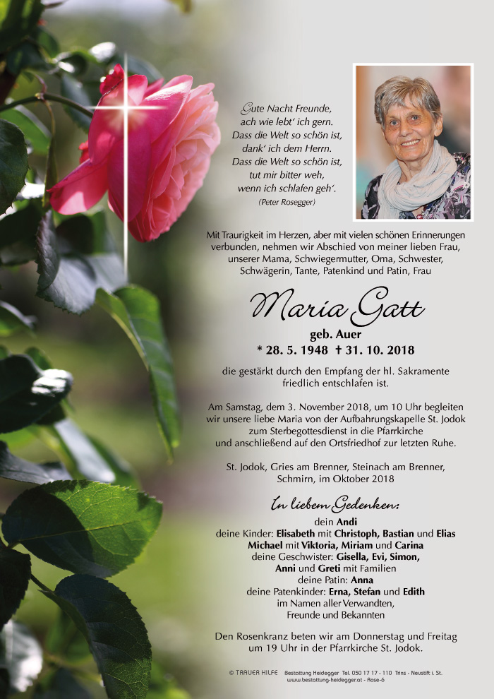 In Verbundenheit Maria Glatzl02.11.2018 07:10 - Maria