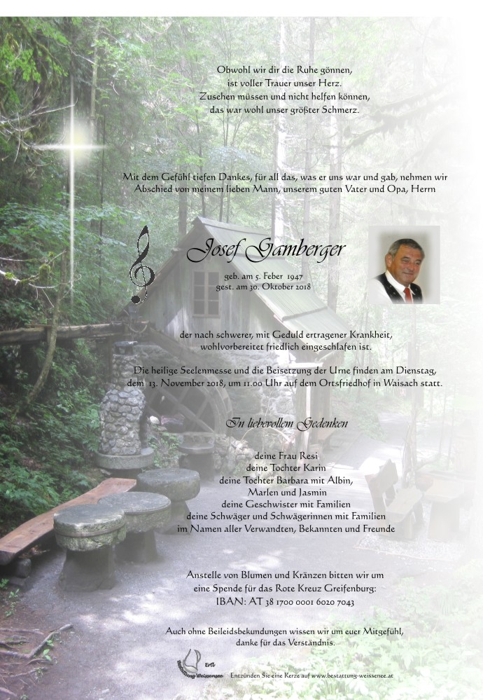Neue Kerze für Josef Gamberger entzünden.