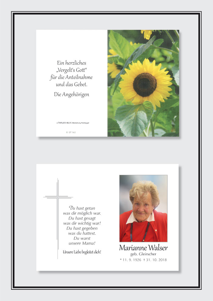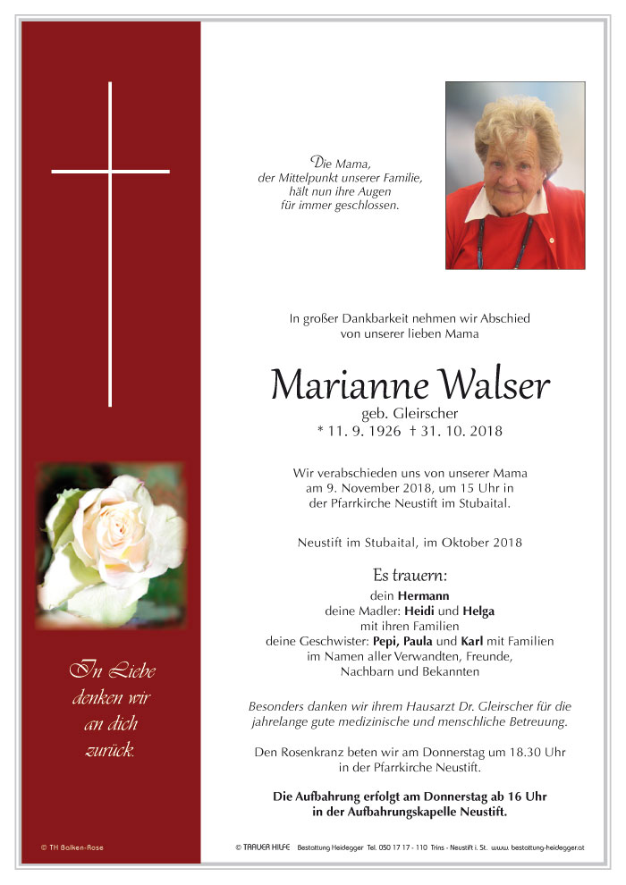 Bestattung wurde durchgeführt von: Karl Neurauter Karl Neurauter Bestattung Heidegger Brennerstraße 69 6150 - Steinach am Brenner Tel.: 05275 5211 zum Bestatter
