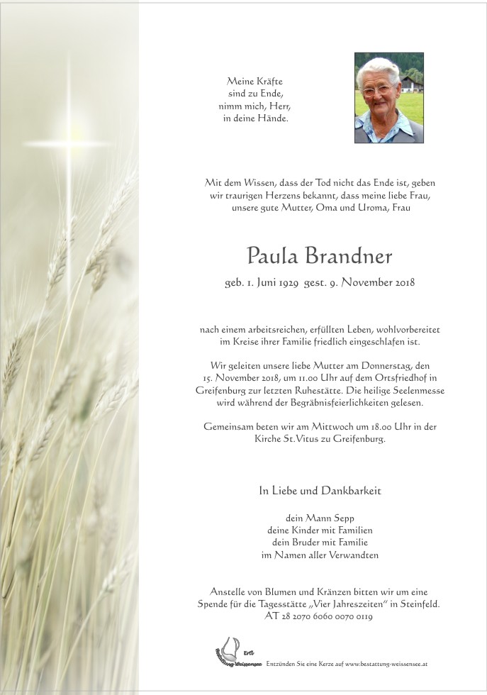 Friedhof Greifenburg, † 09.11.2018 (89 Jahre)