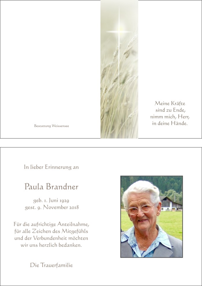 Bestattung wurde durchgeführt von: Markus Ertl Bestattung Weissensee Neusach 26 9762 - Weißensee Tel.: 04713 22 29 zum Bestatter