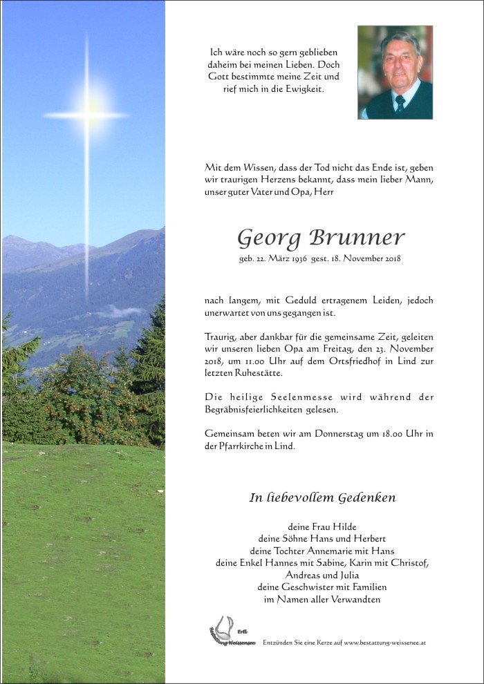 Neue Kerze für Georg Brunner entzünden.