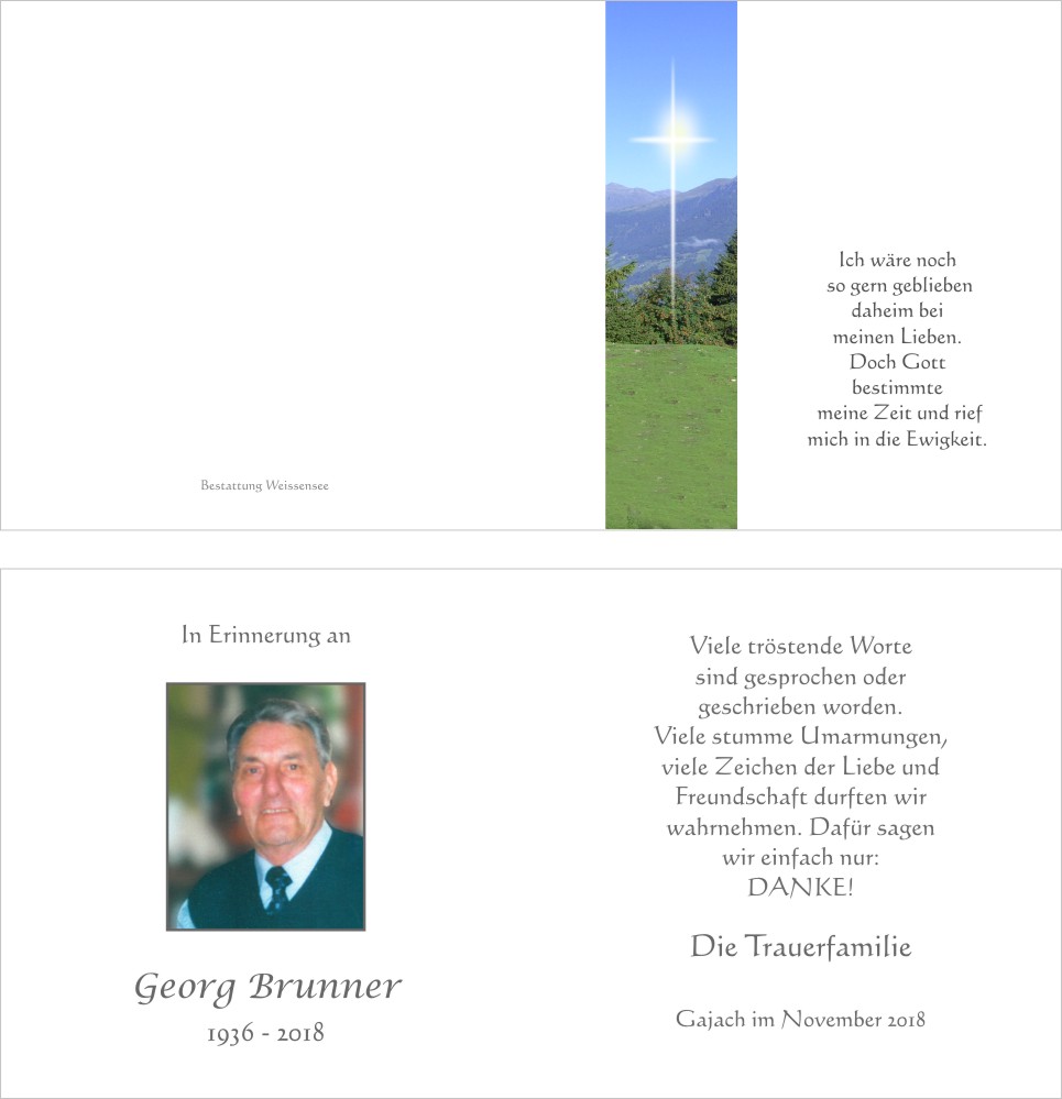 Bestattung wurde durchgeführt von: Markus Ertl Bestattung Weissensee Neusach 26 9762 - Weißensee Tel.: 04713 22 29 zum Bestatter