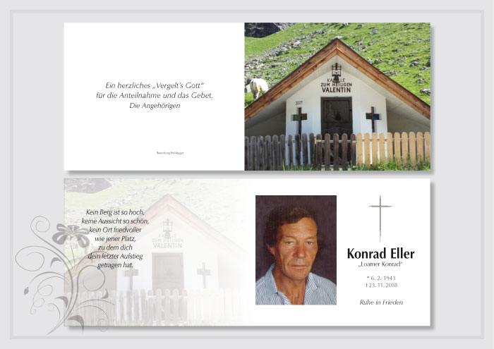Bestattung wurde durchgeführt von: Karl Neurauter Karl Neurauter Bestattung Heidegger Brennerstraße 69 6150 - Steinach am Brenner Tel.: 05275 5211 zum Bestatter