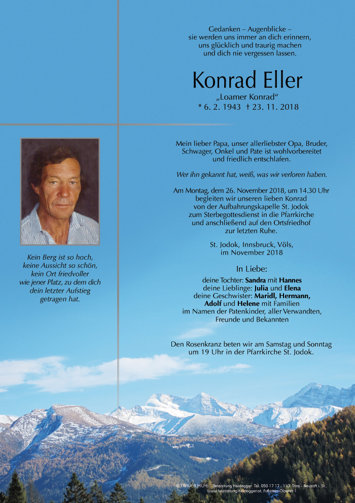 Friedhof St. Jodok, † 23.11.2018 (75 Jahre)