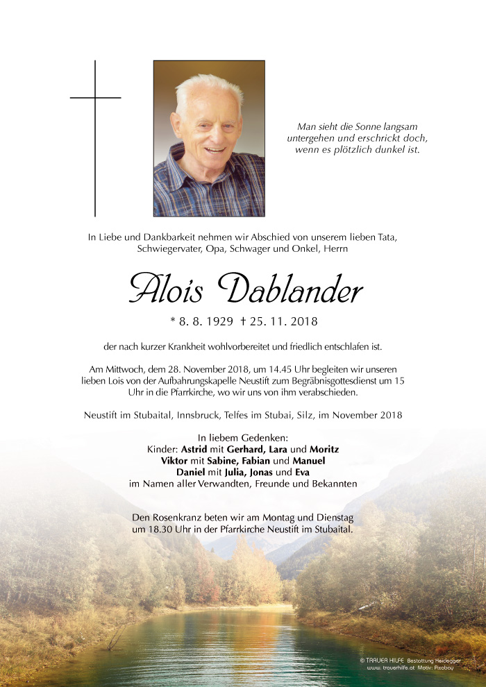 Friedhof Neustift im Stubaital, † 25.11.2018 (89 Jahre)