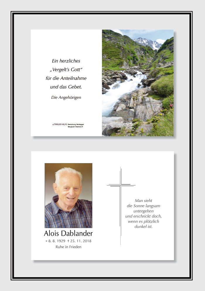 Bestattung wurde durchgeführt von: Karl Neurauter Karl Neurauter Bestattung Heidegger Brennerstraße 69 6150 - Steinach am Brenner Tel.: 05275 5211 zum Bestatter