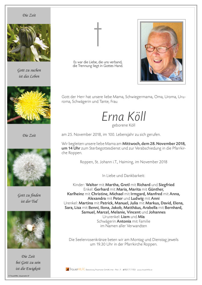 Friedhof Roppen, † 25.11.2018 (99 Jahre)