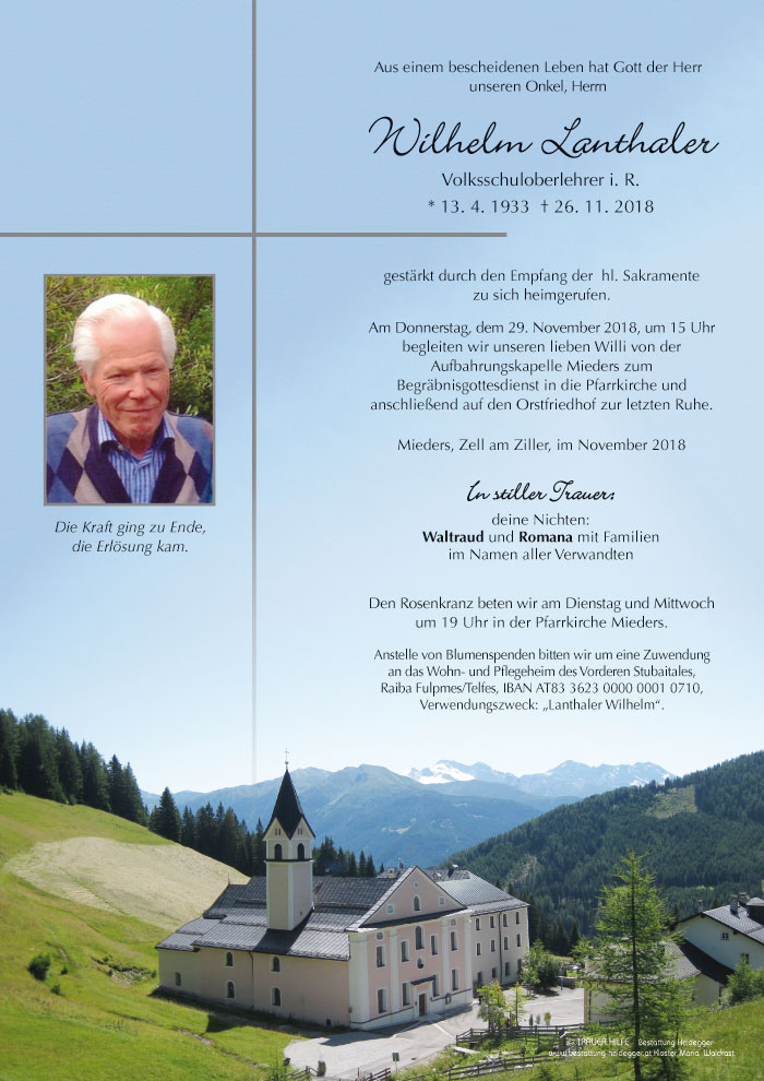 Neue Kerze für Wilhelm Lanthaler entzünden.