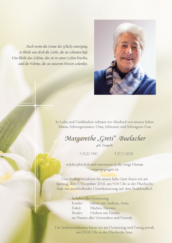 Es war immer eine Freude für uns, eure Mama und Oma zu treffen. Mit großer Herzlichkeit ist Greti den Menschen begegnet. Nun müssen wir lesen, dass sie so plötzlich heimgegangen ist.