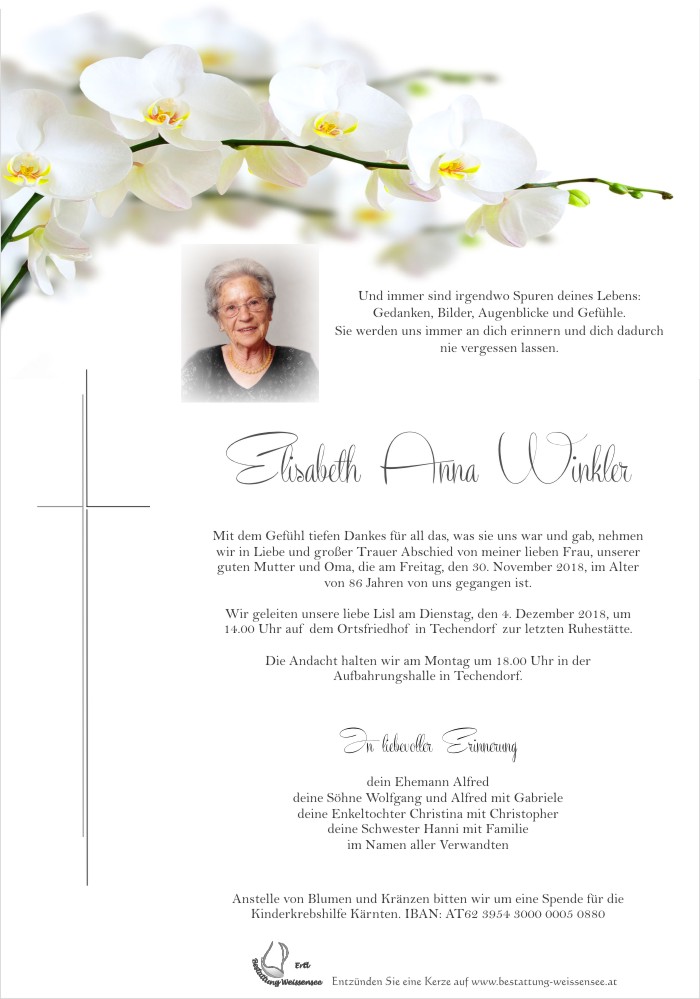 Neue Kerze für Elisabeth Anna Winkler entzünden.