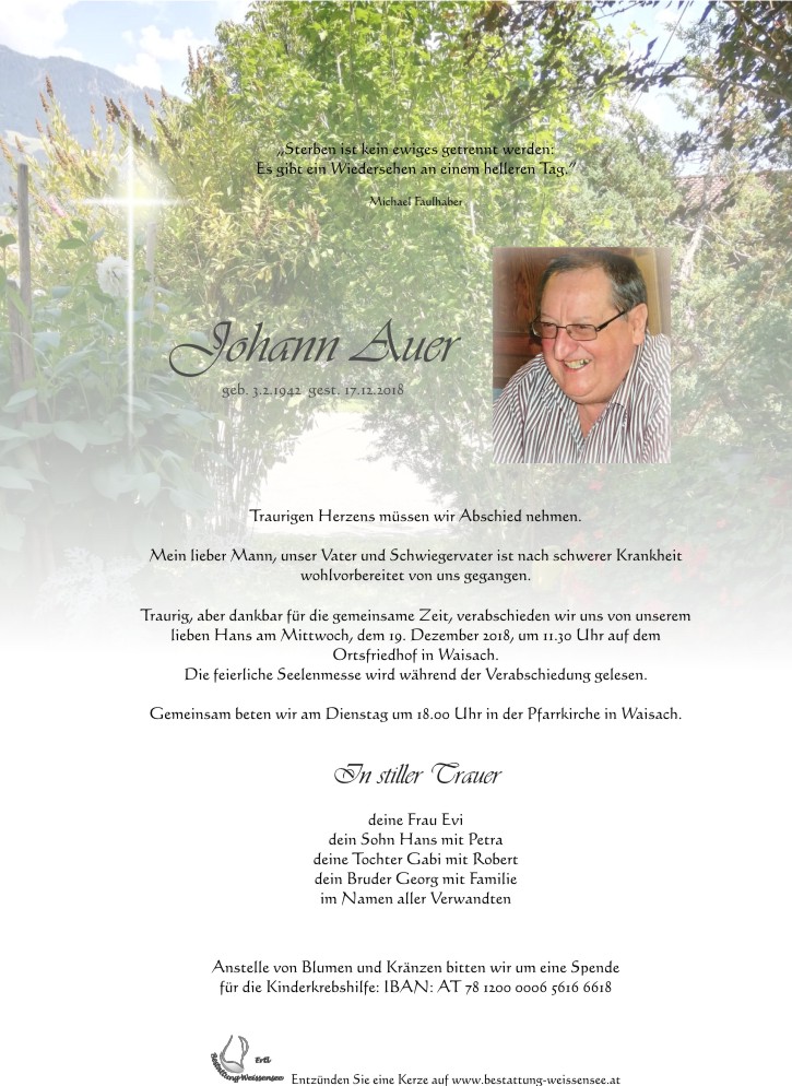 Friedhof Waisach, † 17.12.2018 (76 Jahre)