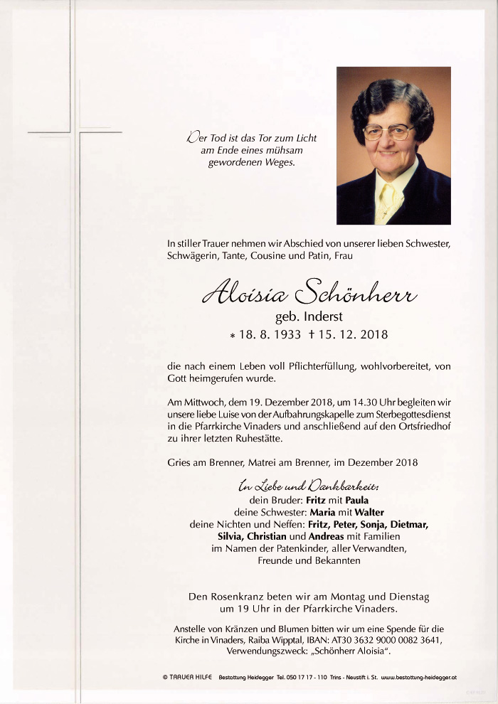 Friedhof Gries am Brenner, † 15.12.2018 (85 Jahre)