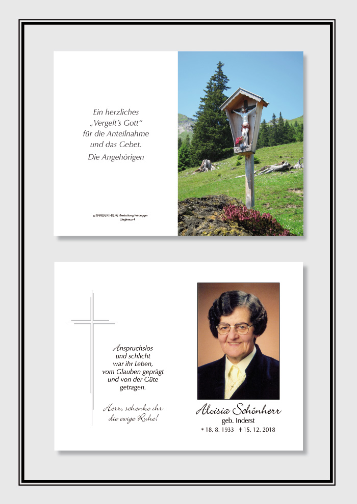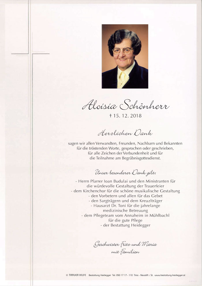 Bestattung wurde durchgeführt von: Karl Neurauter Karl Neurauter Bestattung Heidegger Brennerstraße 69 6150 - Steinach am Brenner Tel.: 05275 5211 zum Bestatter