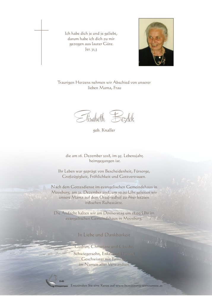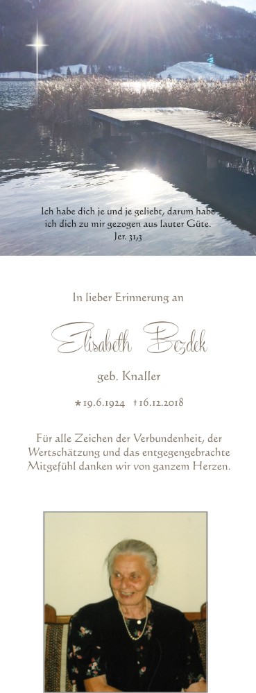 Neue Kerze für Elisabeth Bezdek entzünden.