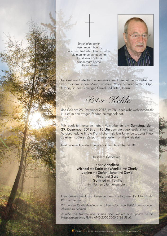 Aufrichtige Anteilnahme entbietet euch Hanni aus Wenns.28.12.2018 10:43 - Weber (Schiechtl)Hanni