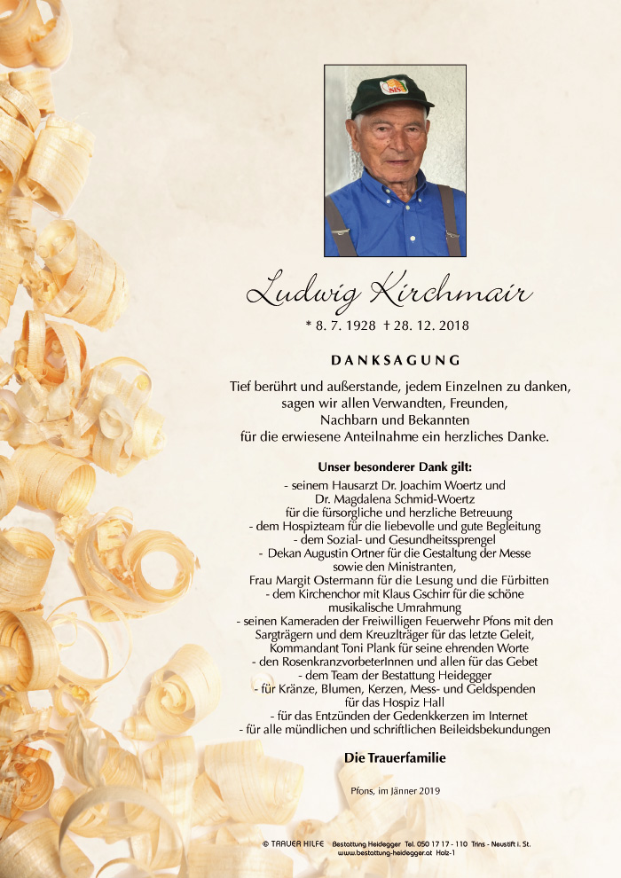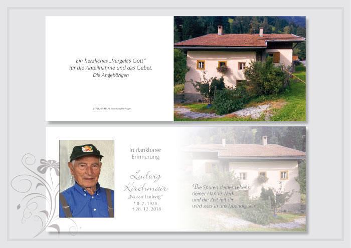 Bestattung wurde durchgeführt von: Karl Neurauter Karl Neurauter Bestattung Heidegger Brennerstraße 69 6150 - Steinach am Brenner Tel.: 05275 5211 zum Bestatter