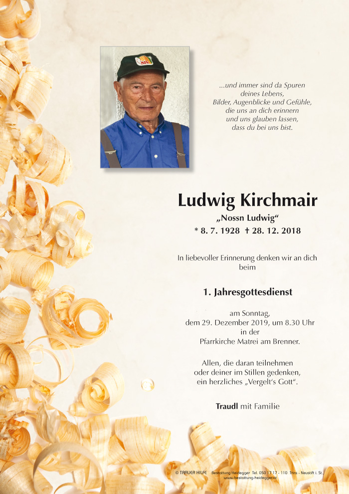 Neue Kerze für Ludwig Kirchmair entzünden.