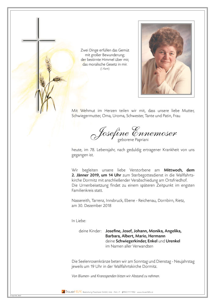 Friedhof Dormitz - Nassereith, † 30.12.2018 (77 Jahre)