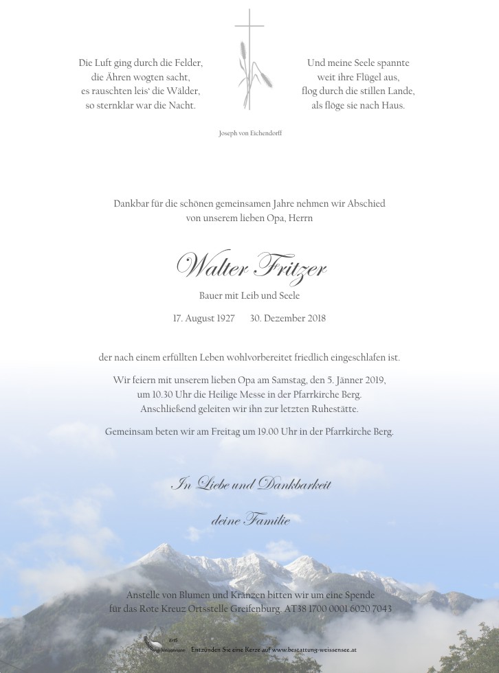 Neue Kerze für Walter Fritzer entzünden.