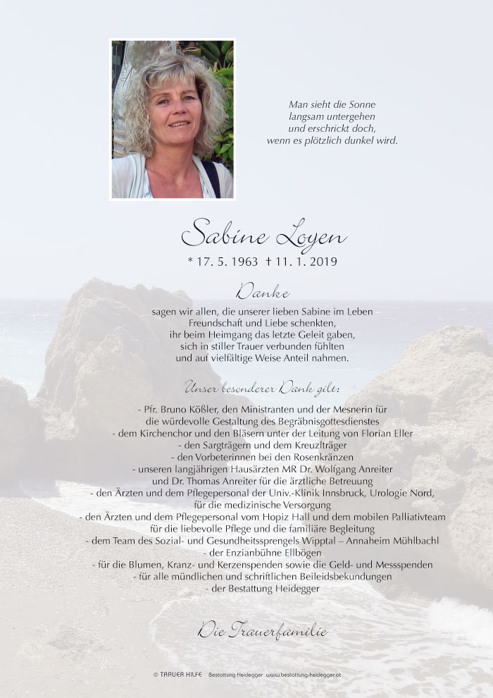 Bestattung wurde durchgeführt von: Karl Neurauter Karl Neurauter Bestattung Heidegger Brennerstraße 69 6150 - Steinach am Brenner Tel.: 05275 5211 zum Bestatter