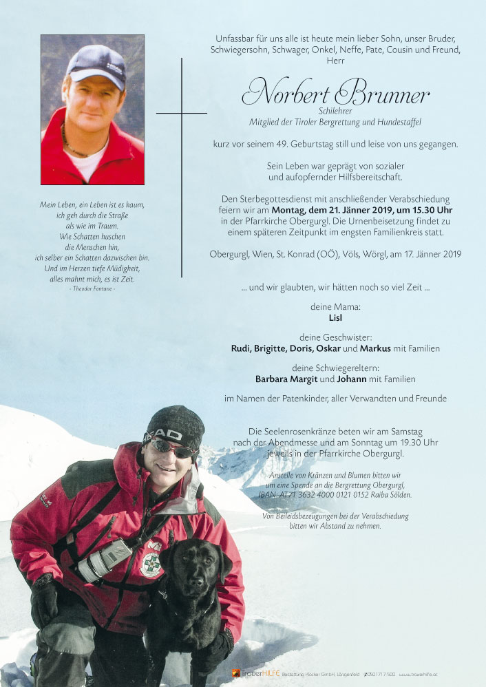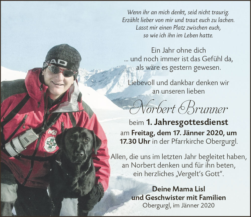 Wir sind immer noch tief betroffen und wissen nicht, wie wir das als real hinnehmen müssen. Für uns ist es nicht wirklich vorstellbar nach Obergurgl zu fahren, wissend Dich nicht wieder zu sehen. Wir danken Dir für Deine Zeit, deine Ruhe und Deine Ausdauer uns das Ski fahren näherzubringen. Wir werden die interessanten Gespräche vermissen, Deinen Humor, die geteilten Bonbons in Liften und Gondeln. Deine Begeisterung für die Natur, Deine Aufrichtigkeit und Deine Liebe für Deine Hunde und zu Deiner Frau.