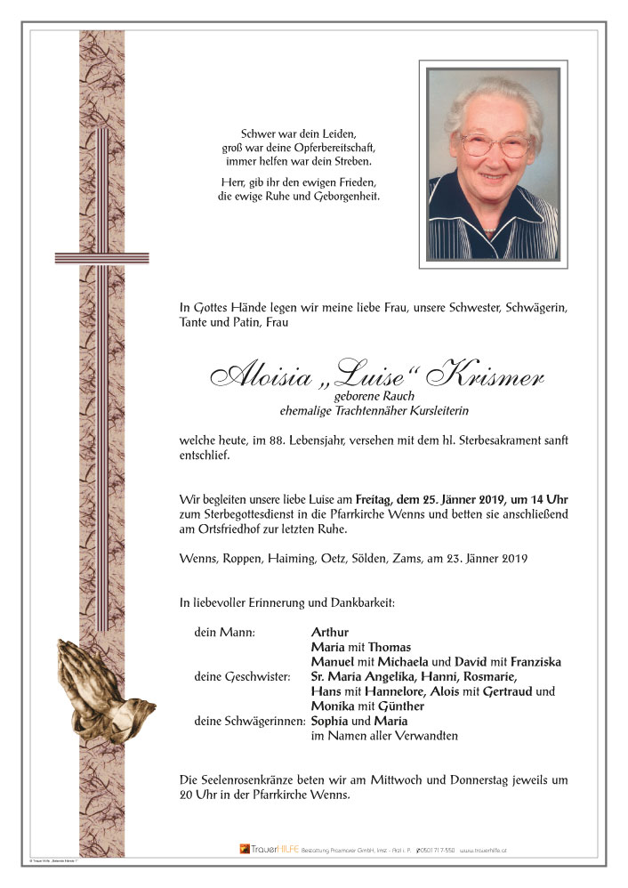 Friedhof Wenns, † 23.01.2019 (87 Jahre)