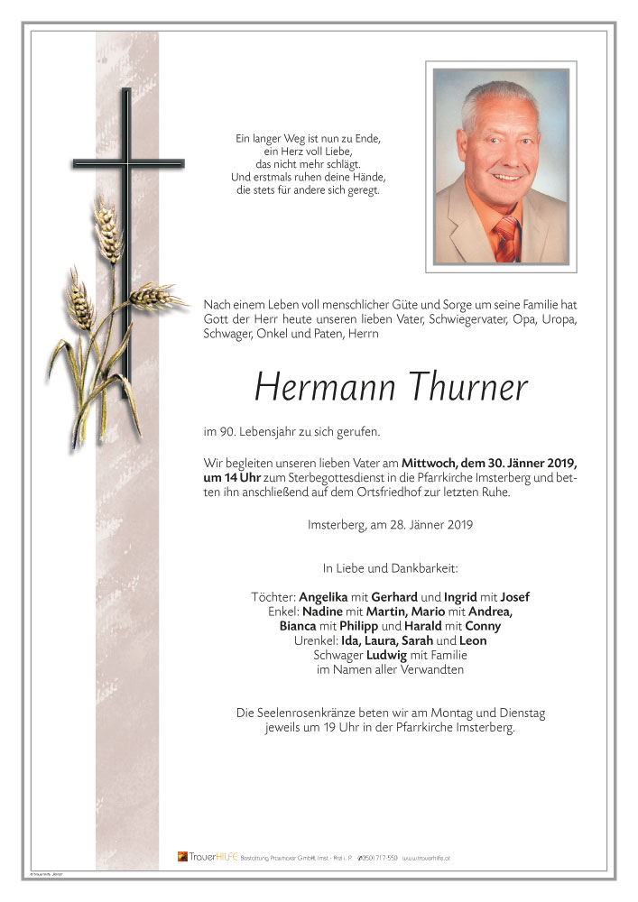 es ist immer sehr traurig, wenn man ein Elternteil verliert. Onkel Hermann hatte ein langes Leben und was besonders schön für ihn war, er konnte bis zu seinem letzten Tag bei euch in der Familie bzw. gesund und zu hause sein!