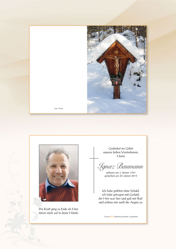Und so hoffen und vertrauen wir darauf, dass Ignaz in der Ewigkeit weiterleben wird. Möge er dort befreit sein von den Lasten und Schmerzen seiner Erkrankung.