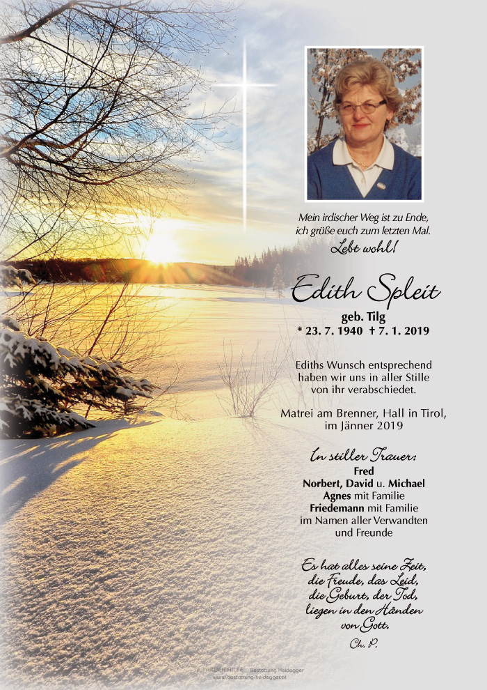 Bestattung wurde durchgeführt von: Karl Neurauter Karl Neurauter Bestattung Heidegger Brennerstraße 69 6150 - Steinach am Brenner Tel.: 05275 5211 zum Bestatter