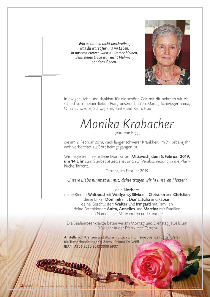 Lieber Norbert, liebe Trauerfamilie, zum all zu frühen Heimgang Eurer geliebten Monika entbiete ich meine aufrichtige Anteilnahme