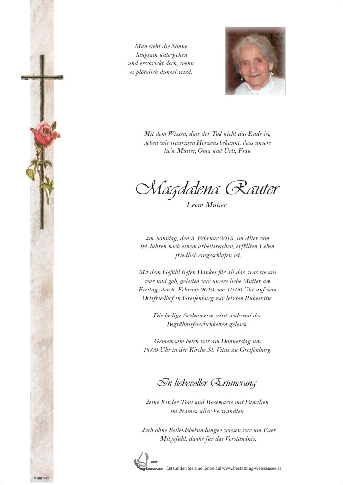 Friedhof Greifenburg, † 03.02.2019 (94 Jahre)