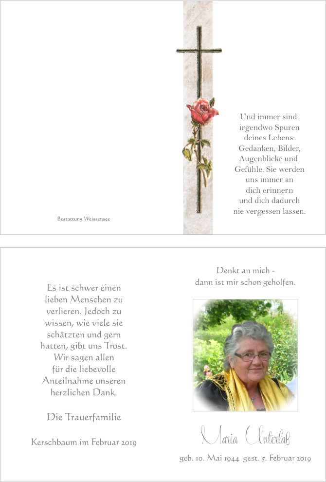 Wir werden Maria nie vergessen und sie in lieber Erinnerung behalten. Wir wünschen euch viel Kraft für die kommende Zeit08.02.2019 08:39 - Horst u Jutta Huber, Sachsenburg