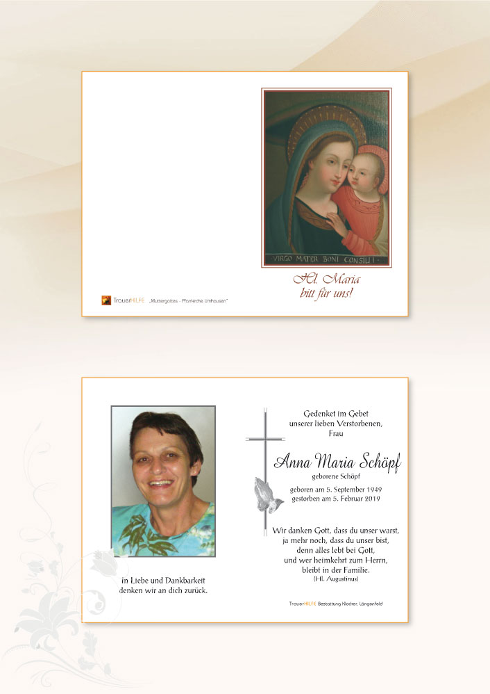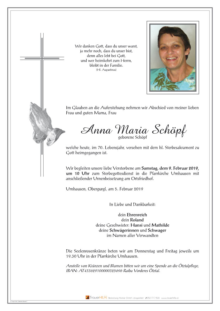 Neue Kerze für Anna Maria Schöpf entzünden.