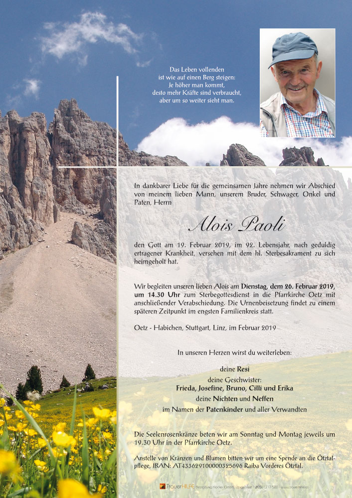deine Sonne wird uns fehlen!21.02.2019 12:11 - Fam Gotthard Frischmann