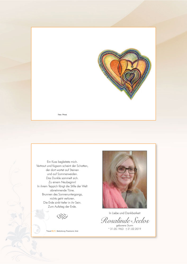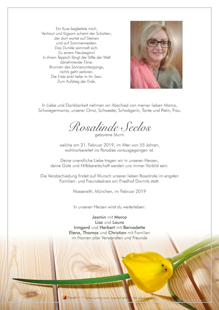 Aufrichtige Anteilnahme zum Tode von eurer lieben Rosalinde viel Kraft und Trost in dieser schweren Zeit.