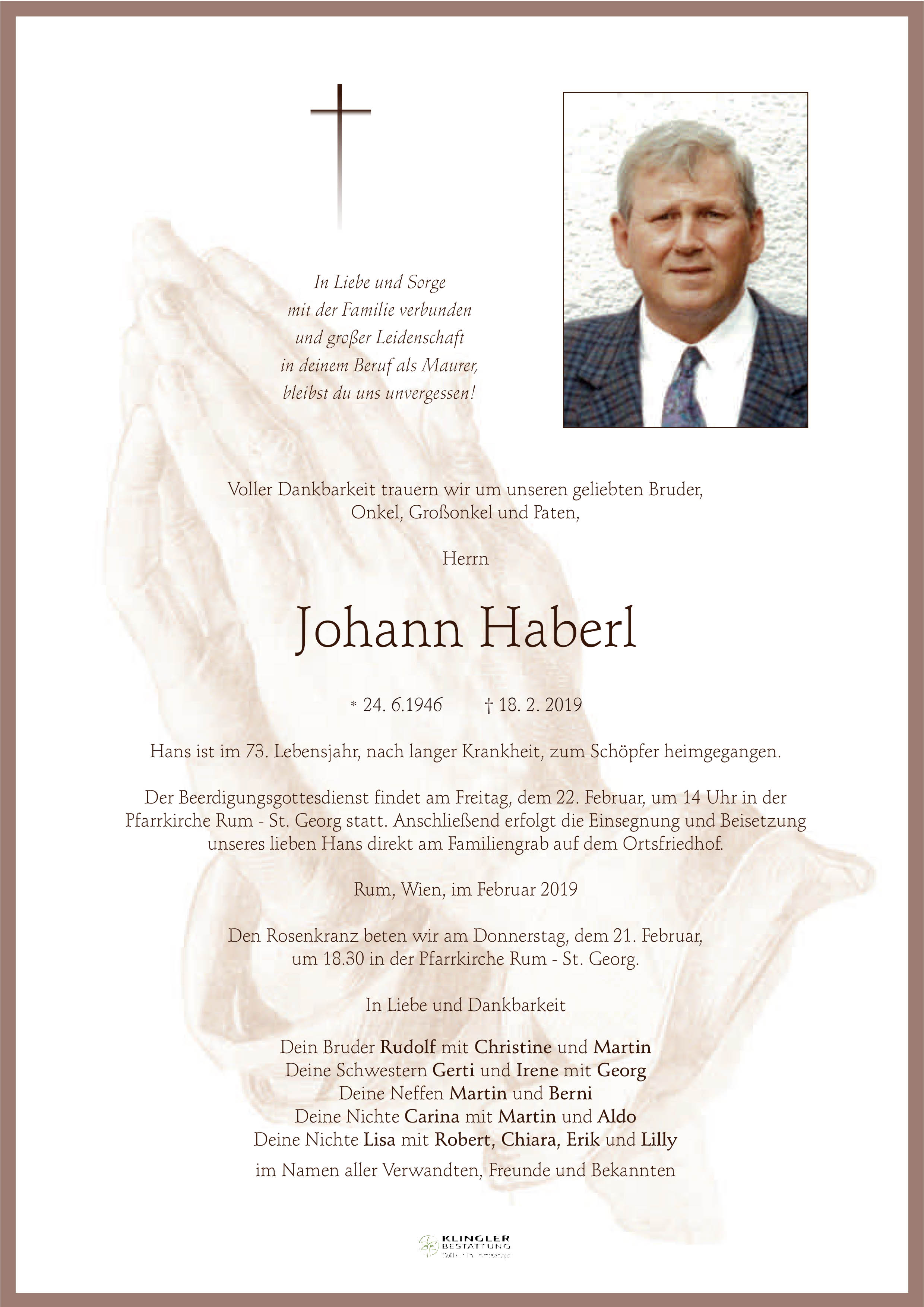 Bestattung wurde durchgeführt von: Mag. Martin Müller Concordia KLINGLER Bestattung Salzburger Straße 33 6060 - Hall in Tirol Tel.: 05223 57 25 40 zum Bestatter