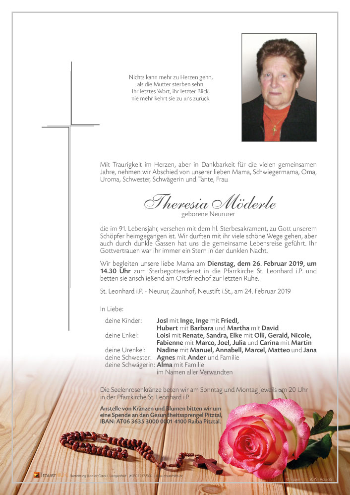 Wir werden uns oft und gerne an unsere liebe Tante Thresa im Pitztal erinnern. Wir haben sie immer gerne besucht, mit ihr gelacht und ihre Herzenswärme gespürt.