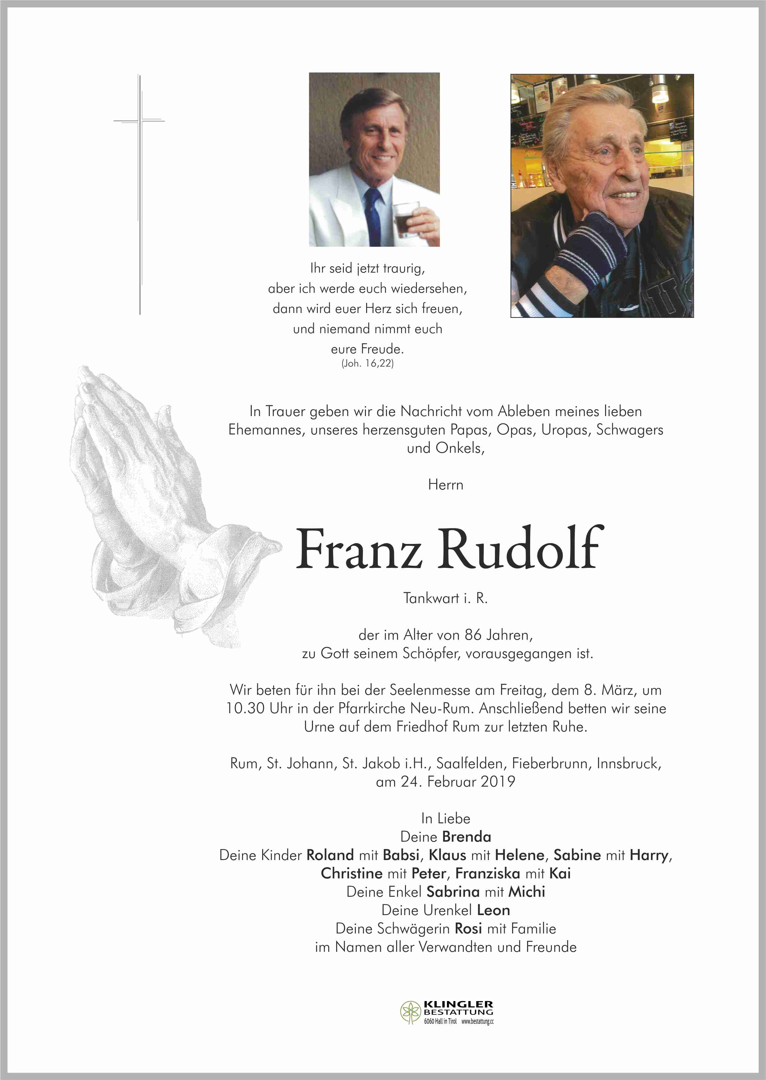 irgendwann sehen wir uns noch Einmal, dann wird alles wieder Gut. Ein Teil von Dir lebt in Uns weiter.❤27.02.2019 21:00 - Rudolf Christine