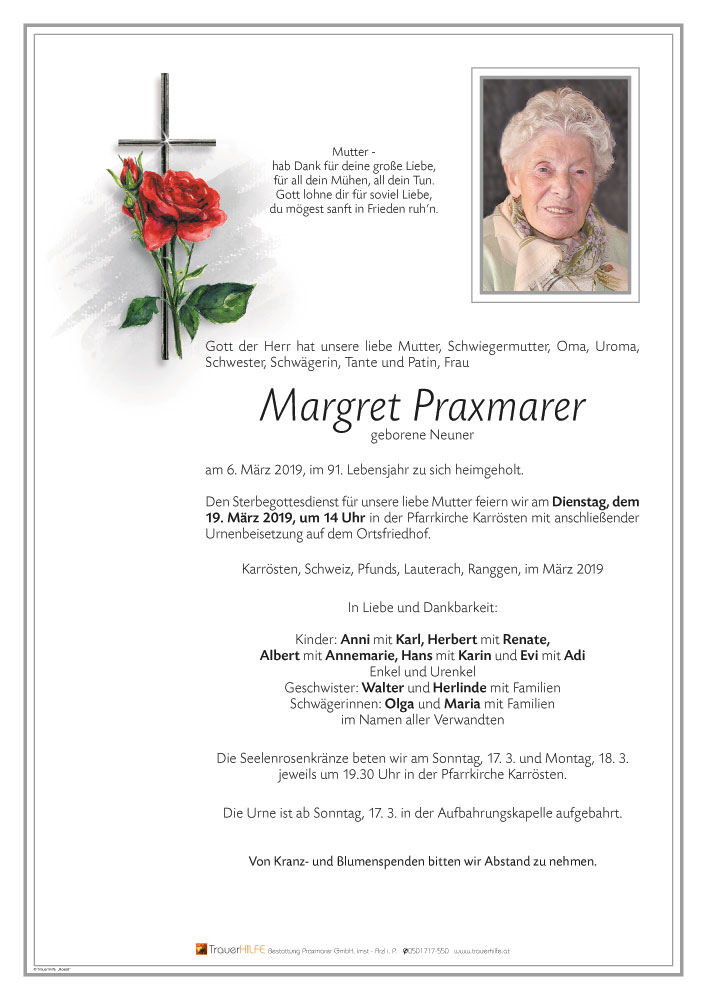 Neue Kerze für Margret Praxmarer entzünden.