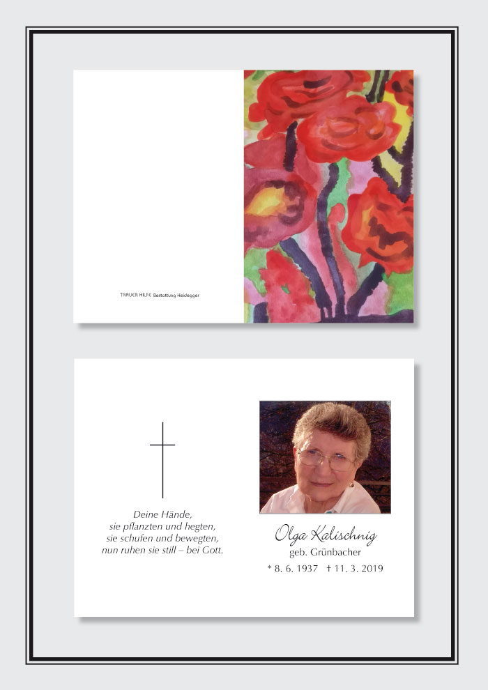 Auch uns wird Olga stets in lebhafter Erinnerung bleiben...von Herzen viel Kraft und aufrichtige Anteilnahme!14.03.2019 23:17 - Franz und Barbara Baldemair