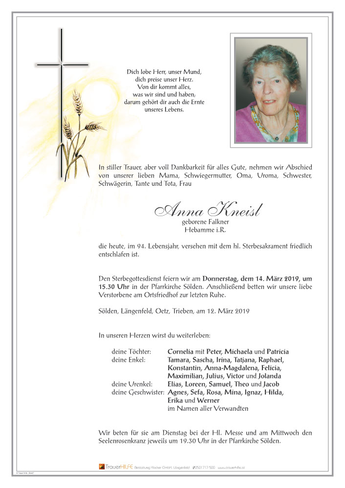 Friedhof Sölden, † 12.03.2019 (93 Jahre)