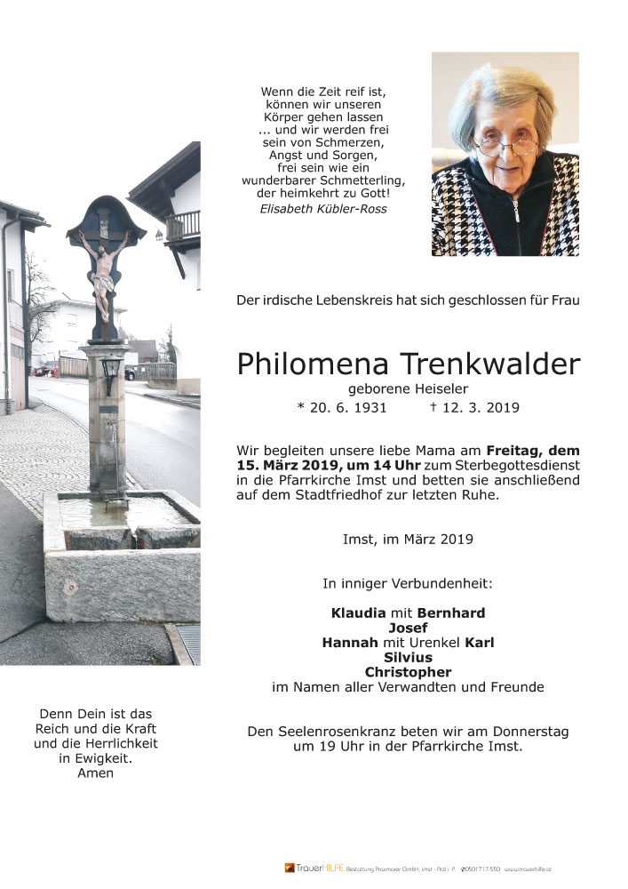 Neue Kerze für Philomena Trenkwalder entzünden.